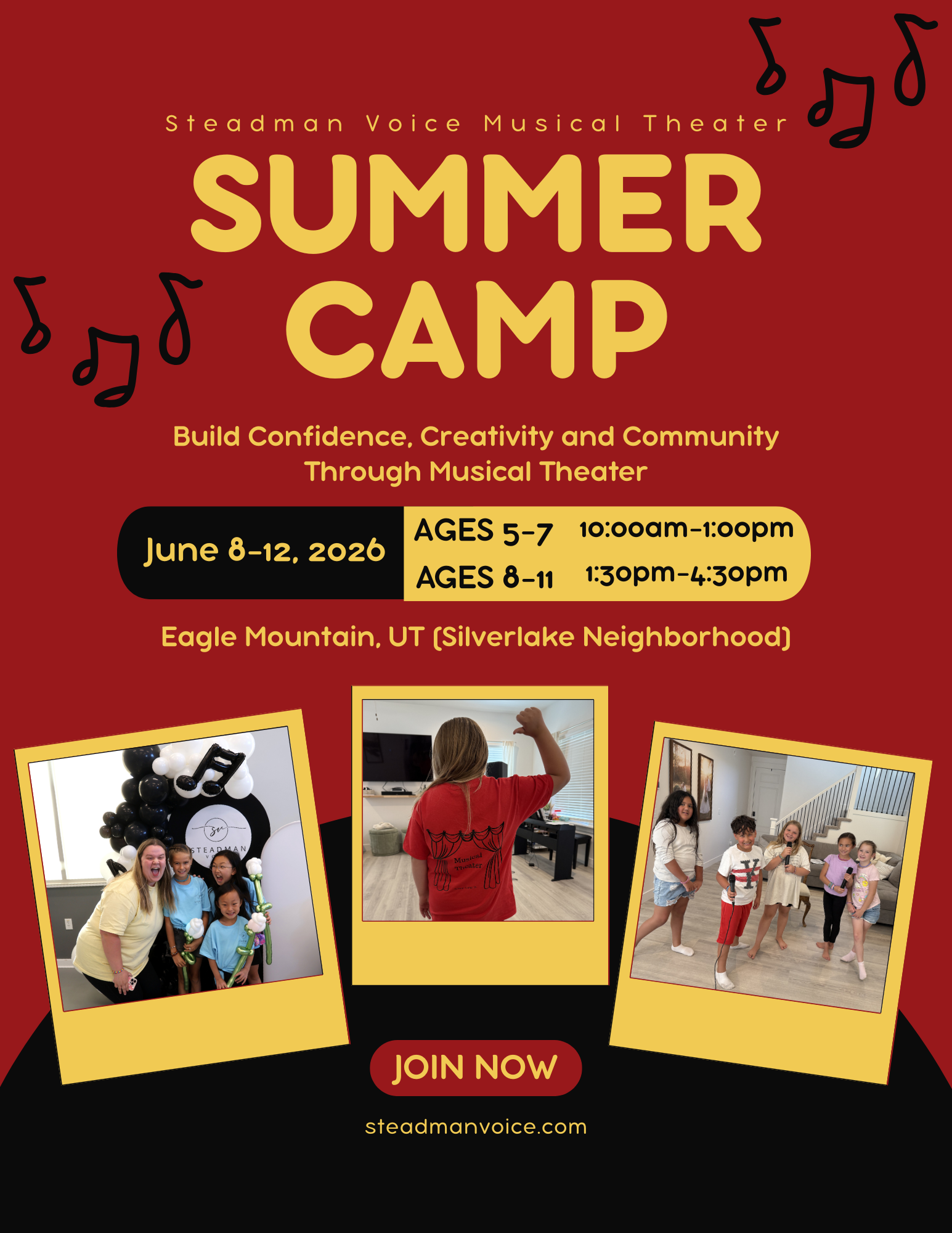 Join Olivia Steadman, renowned local voice teacher and mezzo-soprano, for an unforgettable week of music, creativity, and fun! This exciting summer camp introduces young performers to the magic of musical theater through singing, movement, acting, and performance.